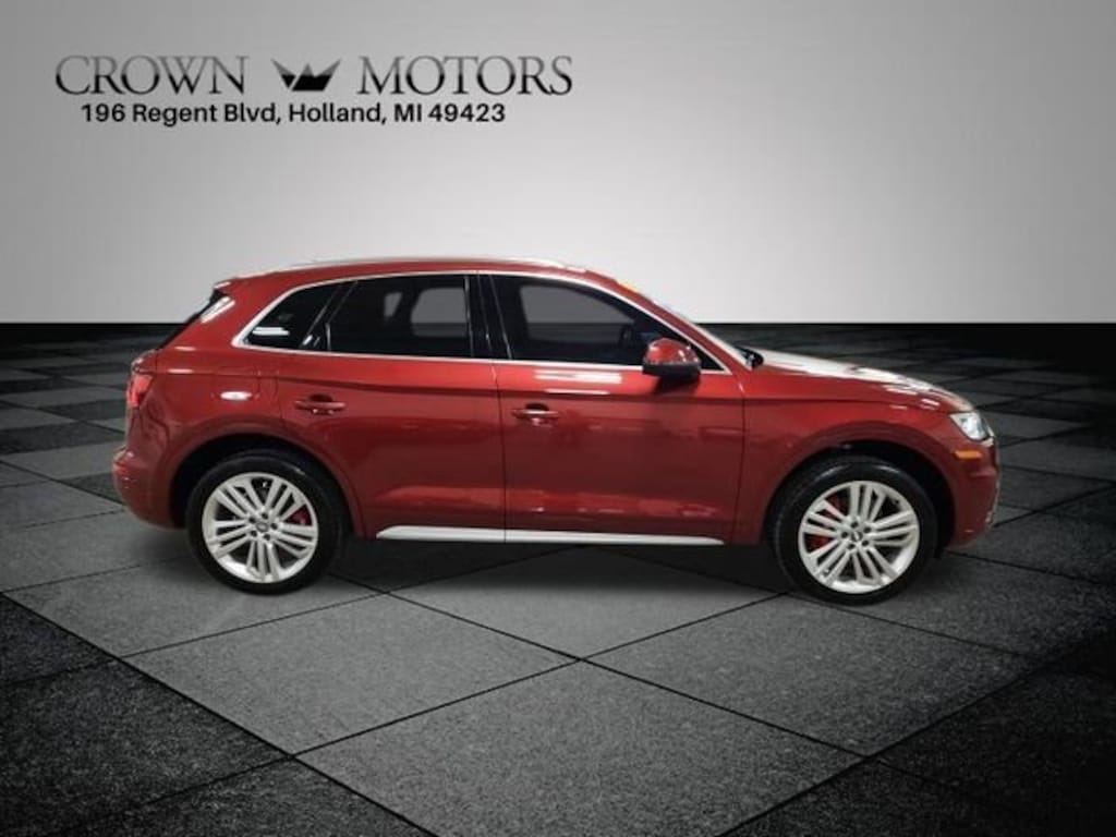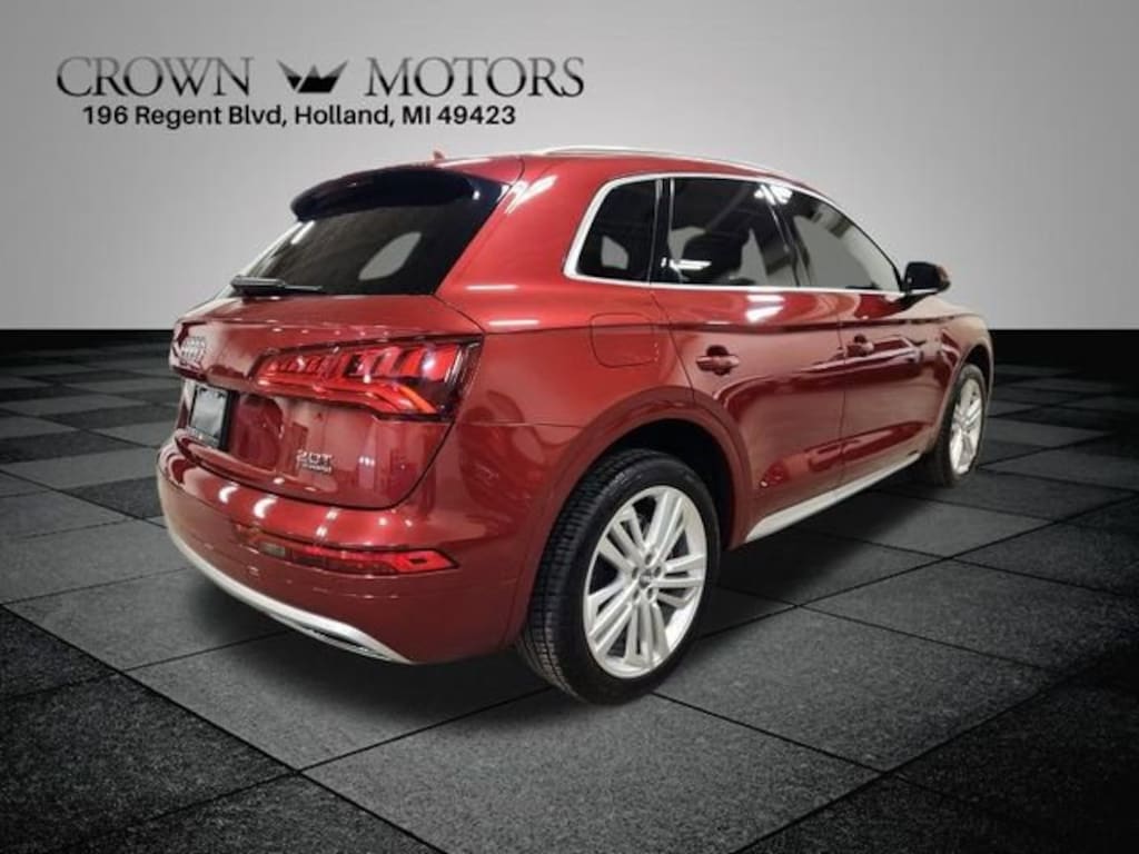 Clean CARFAX. Matador Red Metallic 2018 Audi Q5 2.0T quattro quattro 7-Speed Automatic S tronic 2.0L TFSI ** LOW MILES**, **ACCIDENT FREE**, **LOCAL TRADE IN**, Black Leather, 10 Speakers, 4-Wheel Disc Brakes, 5.302 Axle Ratio, 8-Way Power Front Bucket Seats, ABS brakes, Air Conditioning, Alloy wheels, AM/FM radio: SiriusXM, Audi smartphone interface (Apple CarPlay/Android Auto), Auto-dimming door mirrors, Auto-dimming Rear-View mirror, Automatic temperature control, Brake assist, Bumpers: body-color, Compass, Delay-off headlights, Driver door bin, Driver vanity mirror, Dual front impact airbags, Dual front side impact airbags, DVD-Audio, Electronic Stability Control, Emergency communication system: Audi connect CARE, Exterior Parking Camera Rear, Four wheel independent suspension, Front anti-roll bar, Front Bucket Seats, Front Center Armrest, Front dual zone A/C, Front fog lights, Front reading lights, Garage door transmitter: HomeLink, Genuine wood console insert, Genuine wood dashboard insert, Genuine wood door panel insert, Heated door mirrors, High intensity discharge headlights: Xenon plus, Illuminated entry, Leather Seating Surfaces, Leather Shift Knob, Leather steering wheel, Low tire pressure warning, Memory seat, Navigation System, Occupant sensing airbag, Outside temperature display, Overhead airbag, Overhead console, Panic alarm, Passenger door bin, Passenger vanity mirror, Power door mirrors, Power driver seat, Power Liftgate, Power passenger seat, Power steering, Power windows, Radio data system, Radio: MMI Navigation Plus System, Rain sensing wipers, Rear air conditioning, Rear anti-roll bar, Rear fog lights, Rear reading lights, Rear seat center armrest, Rear window defroster, Rear window wiper, Remote keyless entry, Roof rack, Security system, Speed control, Speed-sensing steering, Speed-Sensitive Wipers, Split folding rear seat, Spoiler, Steering wheel mounted audio controls, Tachometer, Telescoping steering wheel, Tilt steering wheel, Traction control, Trip computer, Turn signal indicator mirrors, Variably intermittent wipers, Wheels: 8" x 18" 5-Double-Spoke Dynamic Design, Black Leather.