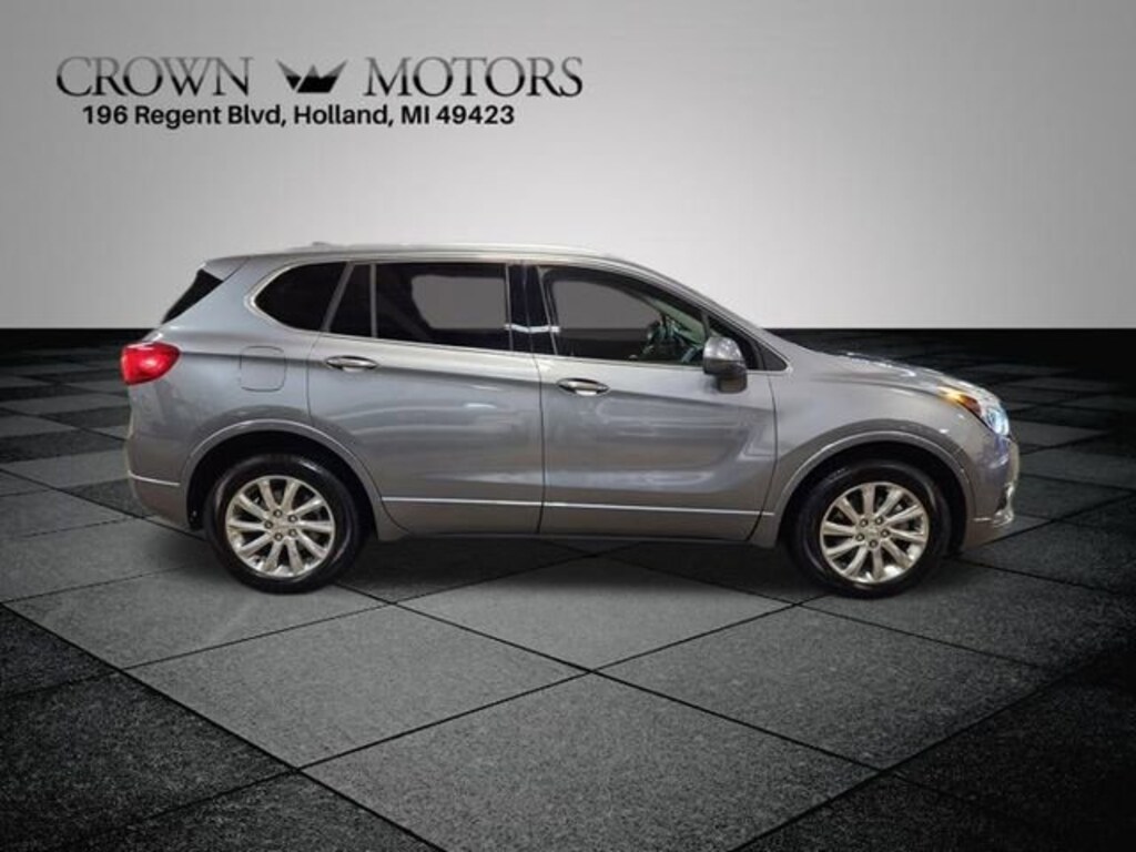 CARFAX One-Owner. Clean CARFAX. Satin Steel Gray Metallic 2019 Buick Envision Essence AWD 6-Speed Automatic 2.5L 4-Cylinder DGI DOHC VVT **ONE OWNER**, ** LOW MILES**, **LEATHER**, **ACCIDENT FREE**, **LOCAL TRADE IN**, AWD, 18" 10-Spoke Polished Aluminum Wheels, 3.50 Final Drive Axle Ratio, 4-Wheel Disc Brakes, 6 Speakers, 6-Speaker Audio System Feature, ABS brakes, Air Conditioning, All-Weather Cargo Mat (LPO), All-Weather Floor Mats, Alloy wheels, AM/FM radio: SiriusXM, Apple CarPlay/Android Auto, Auto-dimming door mirrors, Auto-dimming Rear-View mirror, Automatic temperature control, Brake assist, Buick Interior Protection Package (LPO), Bumpers: body-color, Compass, Delay-off headlights, Driver 8-Way Power Seat Adjuster, Driver door bin, Driver vanity mirror, Dual front impact airbags, Dual front side impact airbags, Electronic Stability Control, Emergency communication system: OnStar and Buick connected services capable, Exterior Parking Camera Rear, Four wheel independent suspension, Front anti-roll bar, Front Bucket Seats, Front Center Armrest, Front dual zone A/C, Front fog lights, Front Passenger 8-Way Power Seat Adjuster, Front reading lights, Fully automatic headlights, Garage door transmitter, Heated door mirrors, Heated Driver & Front Passenger Seats, Heated front seats, Heated rear seats, Heated steering wheel, High-Intensity Discharge Headlights, Illuminated entry, Knee airbag, Leather Shift Knob, Low tire pressure warning, Memory seat, Occupant sensing airbag, Outside temperature display, Overhead airbag, Overhead console, Panic alarm, Passenger door bin, Passenger vanity mirror, Perforated Leather-Appointed Seat Trim, Power door mirrors, Power driver seat, Power Liftgate, Power passenger seat, Power steering, Power windows, Preferred Equipment Group 1SL, Radio data system, Radio: Buick Infotainment System AM/FM Stereo, Radio: Buick Infotainment System AM/FM w/Nav, Rear air conditioning, Rear anti-roll bar, Rear reading lights, Rear seat center armrest, Rear side impact airbag, Rear window defroster, Rear window wiper, Remote keyless entry, Roof rack: rails only, Security system, SiriusXM Radio, Speed control, Speed-sensing steering, Split folding rear seat, Spoiler, Steering wheel mounted audio controls, Tachometer, Telescoping steering wheel, Tilt steering wheel, Traction control, Trip computer, Turn signal indicator mirrors, Variably intermittent wipers, Wheel Locks, AWD.