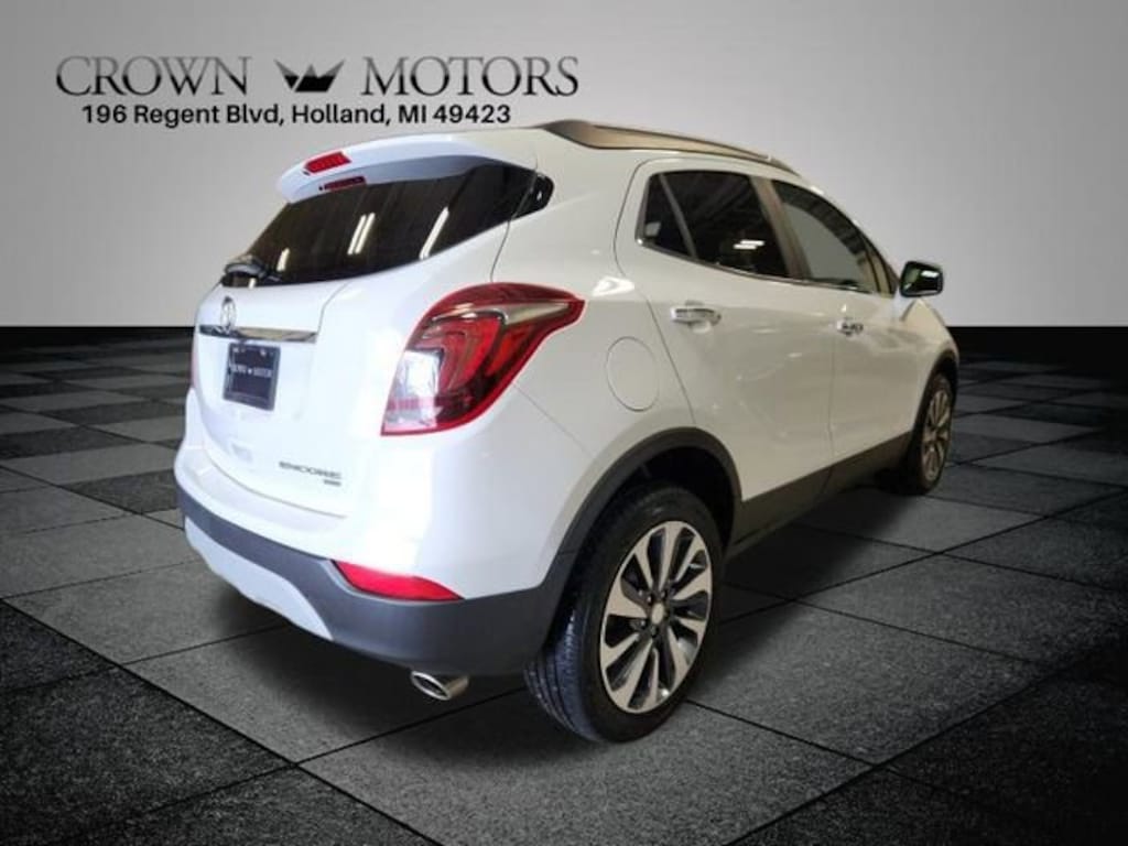 CARFAX One-Owner. Clean CARFAX. Summit White 2022 Buick Encore Preferred AWD 6-Speed Automatic Electronic with Overdrive 1.4L ECOTEC Turbo VVT DOHC 4-Cyl SIDI **ONE OWNER**, ** LOW MILES**, **ACCIDENT FREE**, AWD, 120-Volt Power Outlet, 18" Aluminum Wheels, 2-Way Manual Front Passenger Seat Adjuster, 3.53 Final Drive Axle Ratio, 4-Wheel Disc Brakes, 6 Speakers, 6-Speaker Audio System, 6-Way Power Driver Seat Adjuster, ABS brakes, Air Conditioning, Alloy wheels, AM/FM radio: SiriusXM, Apple CarPlay/Android Auto, Brake assist, Bumpers: body-color, Cloth w/Leatherette Seat Trim, Compass, Delay-off headlights, Driver door bin, Driver vanity mirror, Driver's Seat Mounted Armrest, Dual front impact airbags, Dual front side impact airbags, Electronic Stability Control, Emergency communication system: OnStar and Buick connected services capable, Exterior Parking Camera Rear, Front anti-roll bar, Front Bucket Seats, Front License Plate Bracket, Front reading lights, Front wheel independent suspension, Fully automatic headlights, Heated door mirrors, Illuminated entry, Knee airbag, Leather steering wheel, Low tire pressure warning, Occupant sensing airbag, Outside temperature display, Overhead airbag, Panic alarm, Passenger door bin, Passenger vanity mirror, Power door mirrors, Power driver seat, Power steering, Power windows, Preferred Equipment Group 1SB, Radio data system, Radio: 7" Diagonal Buick Infotainment System, Rear Cross Traffic Alert, Rear seat center armrest, Rear side impact airbag, Rear window defroster, Rear window wiper, Remote keyless entry, Ride & Handling Suspension, Roof rack: rails only, Safety Package, Security system, Side Blind Zone Alert, SiriusXM Radio, Speed control, Speed-sensing steering, Split folding rear seat, Spoiler, Steering wheel mounted audio controls, Tachometer, Telescoping steering wheel, Tilt steering wheel, Traction control, Trip computer, Variably intermittent wipers, AWD.
