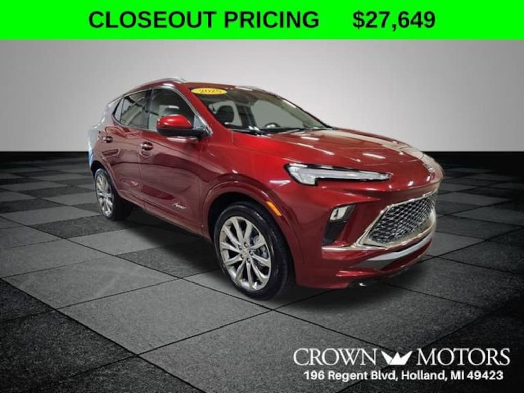 Clean CARFAX. Cinnabar Metallic 2025 Buick Encore GX Avenir AWD 9-Speed Automatic ECOTEC 1.3L Turbo ** LOW MILES**, **ACCIDENT FREE**, **LOCAL TRADE IN**, 2 USB Ports (1 Type-A, 1 Type-C), 2-Way Front Passenger Power Lumbar, 2-Way Power Driver Lumbar Control, 3.17 Final Drive Axle Ratio, 4-Wheel Disc Brakes, 6-Way Power Front Passenger Seat Adjuster, 7 Speakers, 8-Way Power Driver Seat Adjuster, ABS brakes, Adaptive Cruise Control, Air Conditioning, All-Weather Floor Liners (LPO), Alloy wheels, AM/FM radio: SiriusXM, Auto High-beam Headlights, Auto-dimming Rear-View mirror, Automatic temperature control, Avenir Convenience Package, Avenir Technology Package, Bose Premium 7-Speaker Audio System, Brake assist, Bumpers: body-color, Compass, Delay-off headlights, Driver door bin, Driver vanity mirror, Dual front impact airbags, Dual front side impact airbags, Electronic Stability Control, Emergency communication system: OnStar and Buick connected services capable, Enhanced Performance 7-Speaker System w/Amplifier, Front anti-roll bar, Front Bucket Seats, Front Center Armrest, Front dual zone A/C, Front Intermittent Rainsense Wipers, Front reading lights, Front wheel independent suspension, Fully automatic headlights, Garage door transmitter, Hands Free Power Liftgate, HD Surround Vision, Heated door mirrors, Heated Driver & Front Passenger Seats, Heated front seats, Heated steering wheel, Illuminated entry, Knee airbag, Low tire pressure warning, Memory seat, Occupant sensing airbag, Outside temperature display, Overhead airbag, Overhead console, Panic alarm, Passenger door bin, Passenger vanity mirror, Perforated Leather-Appointed Seat Trim, Power door mirrors, Power driver seat, Power passenger seat, Power steering, Power windows, Preferred Equipment Group 1SL, Radio data system, Radio: Audio System w/AM/FM, Rear Camera Mirror, Rear Camera Mirror Washer, Rear Park Assist, Rear reading lights, Rear seat center armrest, Rear side impact airbag, Rear window defroster, Rear window wiper, Remote keyless entry, Ride & Handling Suspension, Security system, SiriusXM Trial Subscription, Speed control, Speed-sensing steering, Split folding rear seat, Spoiler, Steering wheel mounted audio controls, Tachometer, Telescoping steering wheel, Tilt steering wheel, Traction control, Trip computer, Variably intermittent wipers, Wheels: 19" Avenir Premium Pearl Nickel Aluminum, Wireless Apple CarPlay/Wireless Android Auto, Wireless Charging.