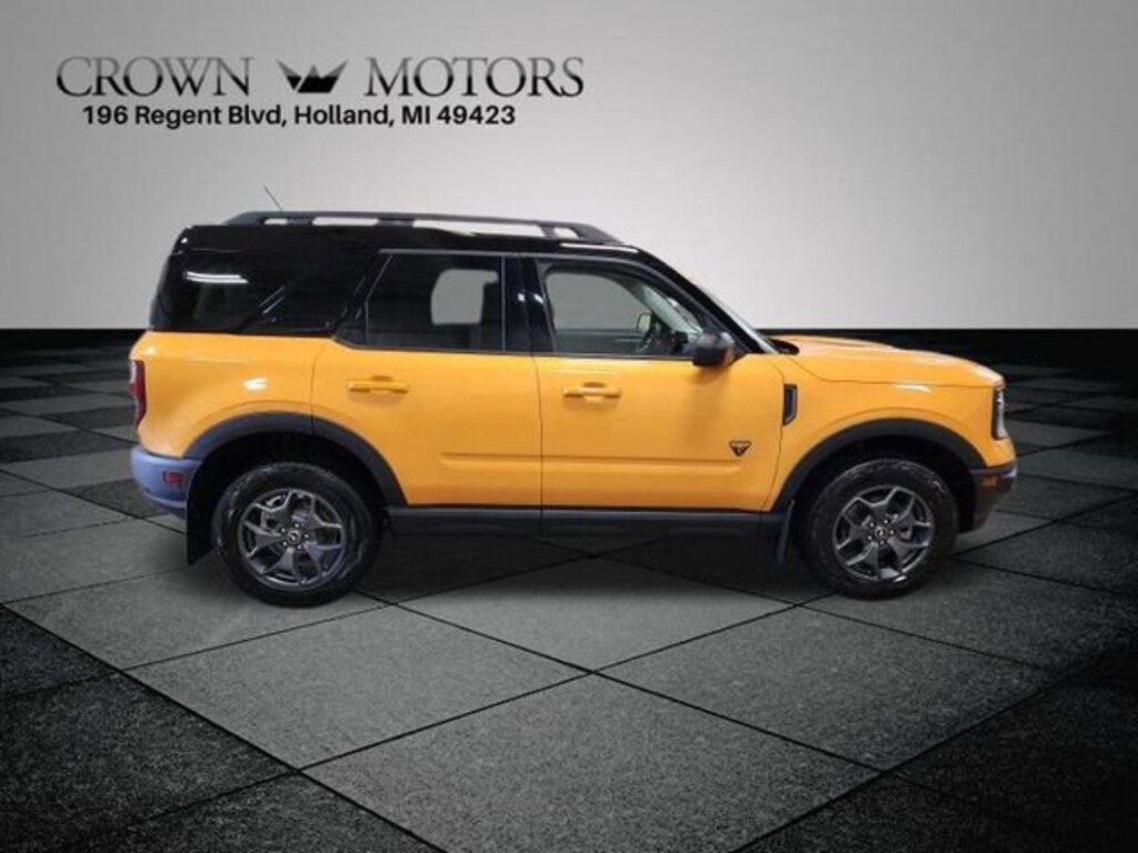 CARFAX One-Owner. Clean CARFAX. Orange 2021 Ford Bronco Sport Badlands 4WD 8-Speed Automatic EcoBoost 2.0L I4 GTDi DOHC Turbocharged VCT ** LOW MILES**, **ACCIDENT FREE**, **LOCAL TRADE IN**, 4WD, 3.80 Axle Ratio, 4-Wheel Disc Brakes, 6 Speakers, ABS brakes, Air Conditioning, Alloy wheels, AM/FM radio: SiriusXM, AM/FM Stereo, Auto High-beam Headlights, Auto-Dimming Rear-View Mirror, Automatic temperature control, Badlands Package, Body-Colored Door Handles, Brake assist, Class II Trailer Tow Package w/Trailer Sway Control, Compass, Delay-off headlights, Driver door bin, Driver vanity mirror, Dual front impact airbags, Dual front side impact airbags, Dual-Zone Electronic Automatic Temperature Control, Electronic Stability Control, Emergency communication system: SYNC 3 911 Assist, Equipment Group 400A, Evasive Steering Assist, Exterior Parking Camera Rear, Ford Co-Pilot360 Assist+, Four wheel independent suspension, Front & Rear Floor Liners w/Carpet Mats, Front & Rear Splash Guards, Front anti-roll bar, Front Bucket Seats, Front Center Armrest, Front fog lights, Front reading lights, Fully automatic headlights, HD Radio, Heated door mirrors, Heated front seats, Heated Leather-Wrapped Steering Wheel, Illuminated entry, Intelligent Adaptive Cruise Control w/Stop & Go, Knee airbag, Leather Trimmed Heated Sport Contour Bucket Seats, Low tire pressure warning, Occupant sensing airbag, Outside temperature display, Overhead airbag, Overhead console, Panic alarm, Passenger door bin, Passenger vanity mirror, Power door mirrors, Power driver seat, Power Moonroof, Power steering, Power windows, Radio data system, Rear anti-roll bar, Rear reading lights, Rear seat center armrest, Rear window defroster, Rear window wiper, Remote keyless entry, Remote Start System, Reverse Sensing System, Roof rack: rails only, Security system, SiriusXM Radio, Speed control, Speed-sensing steering, Speed-Sensitive Wipers, Split folding rear seat, Steering wheel mounted audio controls, SYNC 3 Communications & Entertainment System, SYNC 3/Apple CarPlay/Android Auto, Tachometer, Telescoping steering wheel, Tilt steering wheel, Traction control, Trip computer, Unique Cloth Heated Sport Contour Bucket Seats, Variably intermittent wipers, Voice-Activated Touchscreen Navigation System, Wheels: 17" Carbonized Gray-Painted Aluminum, Wireless Charging Pad, 4WD.