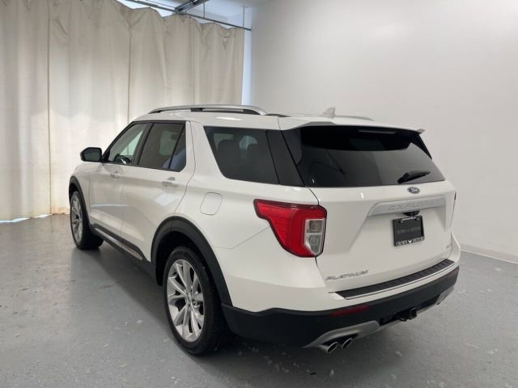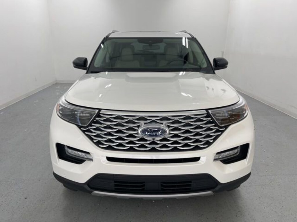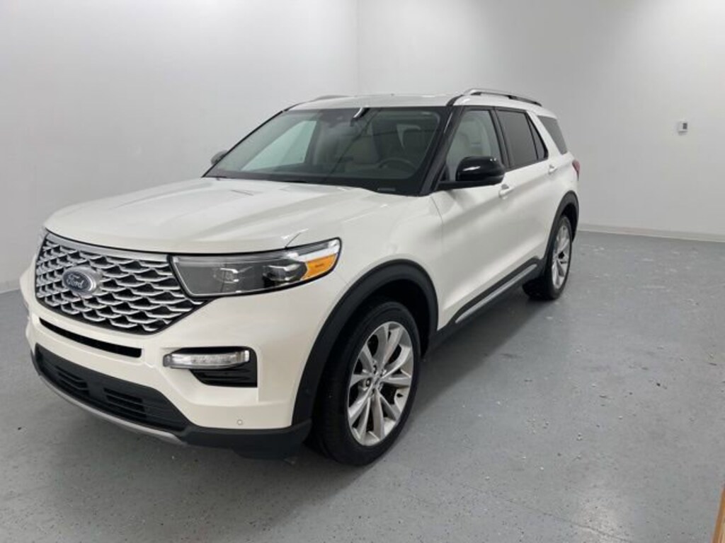 CARFAX One-Owner. Star White Metallic Tri-Coat 2022 Ford Explorer Platinum 4WD 10-Speed Automatic 3.0L EcoBoost V6 **LOCAL TRADE IN**, 4WD, 10.1" LCD Capacitive Portrait Touchscreen, 12 Speakers, 1st Row Heated Seats, 2 Additional Speakers, 3.31 Non-Limited-Slip Rear Axle Ratio, 3.73 Non-Limited-Slip Rear Axle Ratio, 3rd row seats: bench, 4-Wheel Disc Brakes, ABS brakes, Air Conditioning, Alloy wheels, AM/FM radio: SiriusXM, Auto High-beam Headlights, Auto-dimming door mirrors, Auto-dimming Rear-View mirror, Automatic temperature control, Brake assist, Bumpers: body-color, Cargo Area Management System, Class IV Trailer Tow Package, Compass, Delay-off headlights, Driver door bin, Driver vanity mirror, Dual front impact airbags, Dual front side impact airbags, Electronic Stability Control, Emergency communication system: SYNC 3 911 Assist, Equipment Group 601A, Exterior Parking Camera Rear, FordPass Connect, Four wheel independent suspension, Front & Second Row Floor Liners (16B), Front anti-roll bar, Front Bucket Seats, Front Center Armrest, Front dual zone A/C, Front fog lights, Front reading lights, Fully automatic headlights, Garage door transmitter, Genuine wood dashboard insert, Heated door mirrors, Heated front seats, Heated rear seats, Heated steering wheel, Illuminated entry, Knee airbag, Leather Htd/Ventilated Sport Captain's Chairs, Leather steering wheel, Low tire pressure warning, Memory seat, Navigation System, Occupant sensing airbag, Outside temperature display, Overhead airbag, Overhead console, Panic alarm, Passenger door bin, Passenger vanity mirror, Power door mirrors, Power driver seat, Power Liftgate, Power passenger seat, Power steering, Power windows, Premium Technology Package, Radio data system, Radio: B&O Sound System by Bang & Olufsen, Rain sensing wipers, Rear air conditioning, Rear anti-roll bar, Rear reading lights, Rear window defroster, Rear window wiper, Remote keyless entry, Roof rack: rails only, Security system, Speed control, Speed-sensing steering, Speed-Sensitive Wipers, Split folding rear seat, Spoiler, Steering wheel memory, Steering wheel mounted audio controls, SYNC 3 Communications & Entertainment System, SYNC 3/Apple CarPlay/Android Auto, Tachometer, Telescoping steering wheel, Tilt steering wheel, Traction control, Trip computer, Turn signal indicator mirrors, Twin Panel Moonroof, Variably intermittent wipers, Ventilated front seats, Voice-Activated Touchscreen Navigation System, Wheels: 21" Bright Machined-Face Aluminum, 4WD.