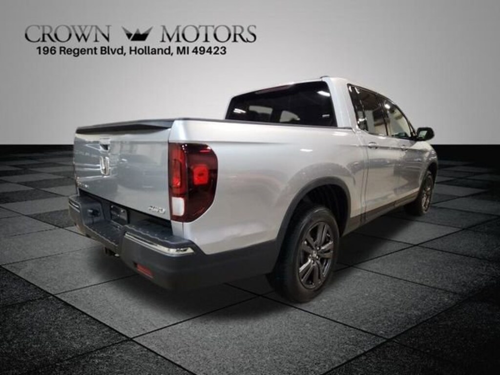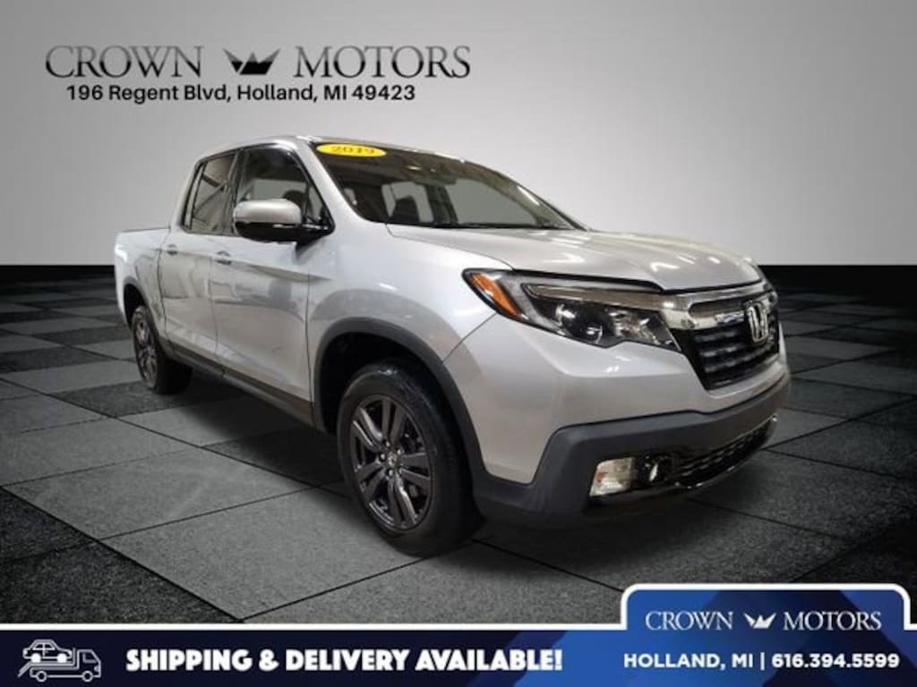 Lunar Silver Metallic 2019 Honda Ridgeline Sport AWD 6-Speed Automatic 3.5L V6 SOHC i-VTEC 24V ** LOW MILES**, **LOCAL TRADE IN**, AWD, Black Cloth, 4-Wheel Disc Brakes, 4.25 Axle Ratio, 7 Speakers, ABS brakes, Air Conditioning, Alloy wheels, AM/FM radio, Automatic temperature control, Bluetooth® Hands-Free Link, Brake assist, Bumpers: body-color, Cloth Seat Trim, Delay-off headlights, Driver door bin, Driver vanity mirror, Driver's Seat Mounted Armrest, Dual front impact airbags, Dual front side impact airbags, Electronic Stability Control, Exterior Parking Camera Rear, Four wheel independent suspension, Front anti-roll bar, Front Bucket Seats, Front dual zone A/C, Front fog lights, Front reading lights, Fully automatic headlights, Garage door transmitter: HomeLink, Illuminated entry, Low tire pressure warning, Occupant sensing airbag, Outside temperature display, Overhead airbag, Overhead console, Panic alarm, Passenger door bin, Passenger seat mounted armrest, Passenger vanity mirror, Power door mirrors, Power steering, Power windows, Radio data system, Radio: AM/FM/MP3, Rear air conditioning, Rear anti-roll bar, Rear reading lights, Rear seat center armrest, Rear step bumper, Rear window defroster, Remote keyless entry, Security system, Speed control, Speed-sensing steering, Split folding rear seat, Steering wheel mounted audio controls, Tachometer, Telescoping steering wheel, Tilt steering wheel, Traction control, Trip computer, Variably intermittent wipers, Wheels: 18" Gray-Painted Alloy, AWD, Black Cloth.