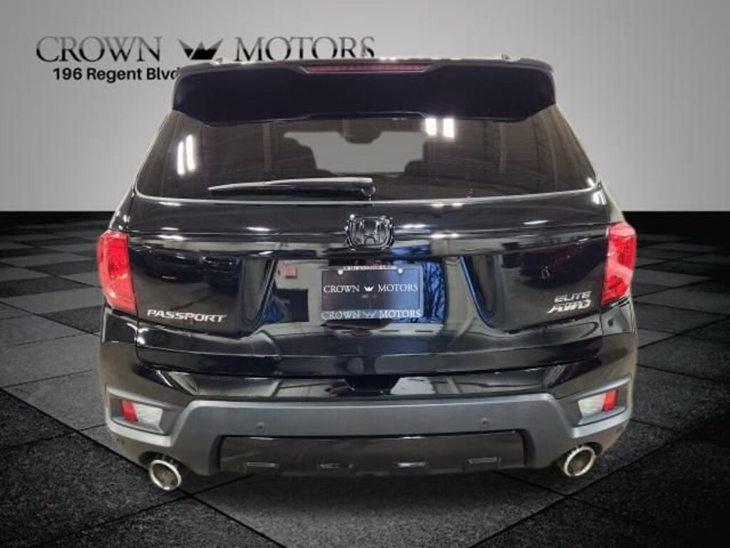 CARFAX One-Owner. Clean CARFAX. Crystal Black Pearl 2022 Honda Passport Elite AWD 9-Speed Automatic 3.5L V6 24V SOHC i-VTEC **ONE OWNER**, **ACCIDENT FREE**, AWD, 10 Speakers, 4-Wheel Disc Brakes, 4.334 Axle Ratio, A/V remote: CabinControl, ABS brakes, Air Conditioning, Alloy wheels, AM/FM radio: SiriusXM, Apple CarPlay/Android Auto, Auto High-beam Headlights, Auto-dimming door mirrors, Auto-dimming Rear-View mirror, Automatic temperature control, Blind Spot Information (BSI) System warning, Brake assist, Bumpers: body-color, Compass, Delay-off headlights, Driver door bin, Driver vanity mirror, Driver's Seat Mounted Armrest, Dual front impact airbags, Dual front side impact airbags, Electronic Stability Control, Emergency communication system: HondaLink, Exterior Parking Camera Rear, Forward collision: Collision Mitigation Braking System (CMBS) + FCW mitigation, Four wheel independent suspension, Front anti-roll bar, Front Bucket Seats, Front Center Armrest, Front dual zone A/C, Front fog lights, Front reading lights, Fully automatic headlights, Garage door transmitter: HomeLink, Heated & Ventilated Front Bucket Seats, Heated door mirrors, Heated front seats, Heated rear seats, Heated steering wheel, Illuminated entry, Lane departure: Lane Keeping Assist System (LKAS) active, Low tire pressure warning, Memory seat, Navigation system: Honda Satellite-Linked Navigation System, Occupant sensing airbag, Outside temperature display, Overhead airbag, Overhead console, Panic alarm, Passenger door bin, Passenger seat mounted armrest, Passenger vanity mirror, Perforated Leather-Trimmed Seats, Power door mirrors, Power driver seat, Power Liftgate, Power moonroof, Power passenger seat, Power steering, Power windows, Radio data system, Radio: 540-Watt Premium Audio System w/10 Speakers, Rain sensing wipers, Rear air conditioning, Rear anti-roll bar, Rear reading lights, Rear seat center armrest, Rear window defroster, Rear window wiper, Remote keyless entry, Roof rack: rails only, Security system, Speed control, Speed-sensing steering, Split folding rear seat, Spoiler, Steering wheel mounted audio controls, Tachometer, Telescoping steering wheel, Tilt steering wheel, Traction control, Trip computer, Turn signal indicator mirrors, Variably intermittent wipers, Ventilated front seats, Wheels: 20" Machined-Finish Alloy, AWD.