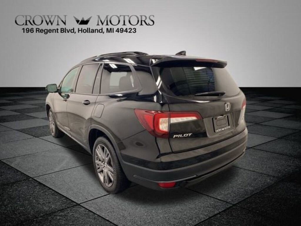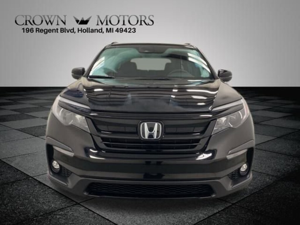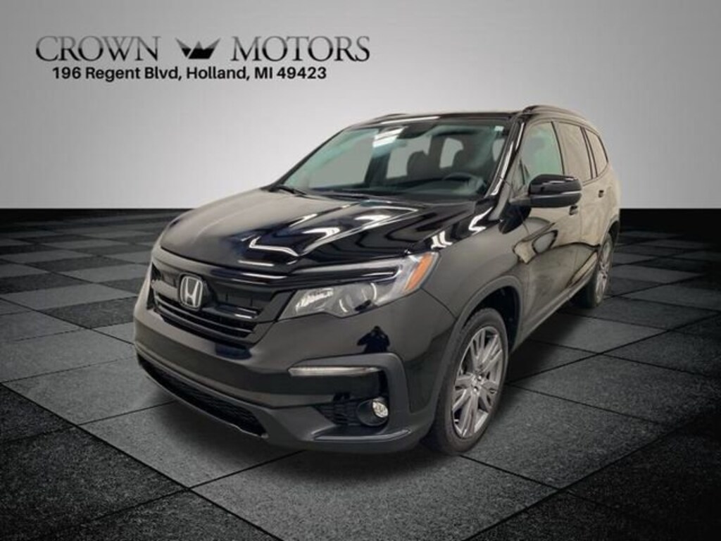 CARFAX One-Owner. Clean CARFAX. Crystal Black 2022 Honda Pilot Sport AWD 9-Speed Automatic 3.5L V6 24V SOHC i-VTEC **ONE OWNER**, ** LOW MILES**, **ACCIDENT FREE**, **LOCAL TRADE IN**, AWD, 3rd row seats: split-bench, 4-Wheel Disc Brakes, 4.33 Axle Ratio, 7 Speakers, A/V remote: CabinControl, ABS brakes, Air Conditioning, Alloy wheels, AM/FM radio: SiriusXM, Apple CarPlay/Android Auto, Auto High-beam Headlights, Automatic temperature control, Blind Spot Information (BSI) System warning, Brake assist, Bumpers: body-color, Cloth Seat Trim, Delay-off headlights, Driver door bin, Driver vanity mirror, Dual front impact airbags, Dual front side impact airbags, Electronic Stability Control, Emergency communication system: HondaLink Assist, Exterior Parking Camera Rear, Forward collision: Collision Mitigation Braking System (CMBS) + FCW mitigation, Four wheel independent suspension, Front anti-roll bar, Front Bucket Seats, Front Center Armrest, Front dual zone A/C, Front fog lights, Front reading lights, Fully automatic headlights, Heated door mirrors, Heated Front Bucket Seats, Heated front seats, Illuminated entry, Lane departure: Lane Keeping Assist System (LKAS) active, Low tire pressure warning, Occupant sensing airbag, Outside temperature display, Overhead airbag, Overhead console, Panic alarm, Passenger door bin, Passenger vanity mirror, Power door mirrors, Power driver seat, Power steering, Power windows, Radio data system, Radio: 215-Watt Audio System, Rear air conditioning, Rear anti-roll bar, Rear reading lights, Rear seat center armrest, Rear window defroster, Rear window wiper, Reclining 3rd row seat, Remote keyless entry, Roof rack: rails only, Security system, Speed control, Speed-sensing steering, Speed-Sensitive Wipers, Split folding rear seat, Spoiler, Steering wheel mounted audio controls, Tachometer, Telescoping steering wheel, Tilt steering wheel, Traction control, Trip computer, Turn signal indicator mirrors, Variably intermittent wipers, Wheels: 20" Pewter Gray Alloy, AWD.