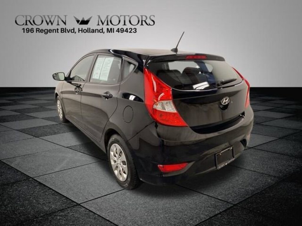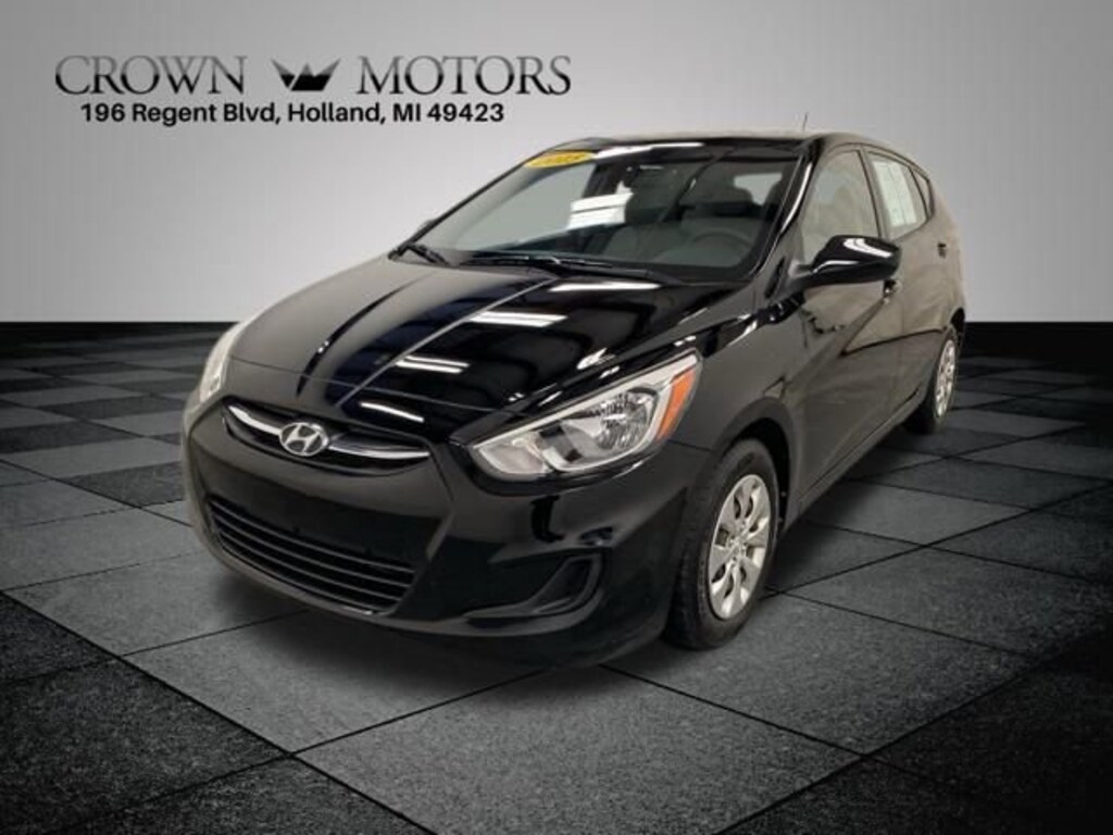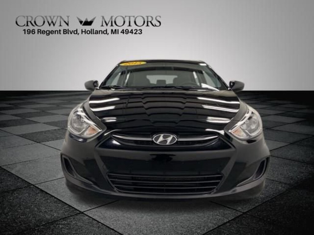 CARFAX One-Owner. Ultra Black 2015 Hyundai Accent GS FWD 6-Speed Automatic with Overdrive 1.6L I4 DGI DOHC 16V **ONE OWNER**, ** LOW MILES**, **LOCAL TRADE IN**, Black Cloth, 6 Speakers, ABS brakes, Air Conditioning, AM/FM radio: SiriusXM, Anti-whiplash front head restraints, Brake assist, Bumpers: body-color, CD player, Cloth Seat Trim, Driver door bin, Driver vanity mirror, Dual front impact airbags, Dual front side impact airbags, Electronic Stability Control, Front anti-roll bar, Front Bucket Seats, Front reading lights, Front wheel independent suspension, Heated door mirrors, Illuminated entry, Low tire pressure warning, Occupant sensing airbag, Outside temperature display, Overhead airbag, Overhead console, Panic alarm, Passenger door bin, Passenger vanity mirror, Power door mirrors, Power steering, Power windows, Radio: AM/FM/SiriusXM/CD/MP3 Audio System, Rear window defroster, Rear window wiper, Remote keyless entry, Speed control, Speed-sensing steering, Split folding rear seat, Tachometer, Tilt steering wheel, Traction control, Trip computer, Wheels: 14" x 5.0J Steel w/Cover, Black Cloth.
