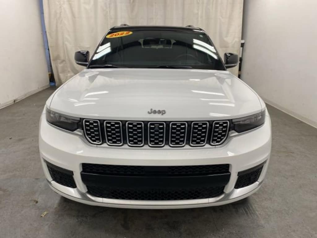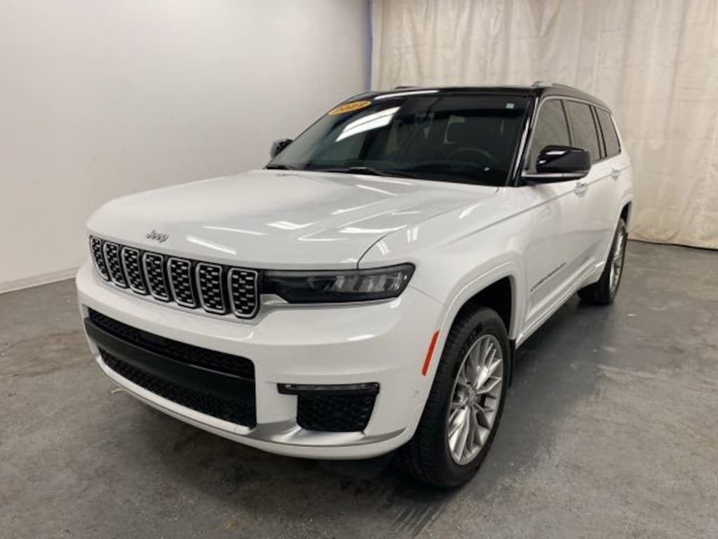Clean CARFAX. Bright White Clearcoat 2022 Jeep Grand Cherokee L Summit 4WD 8-Speed Automatic 3.6L V6 24V VVT ** LOW MILES**, **ACCIDENT FREE**, **LOCAL TRADE IN**, 4WD, 10 Speakers, 2nd Row Manual Window Shades, 3.45 Rear Axle Ratio, 3rd row seats: split-bench, 4-Wheel Disc Brakes, ABS brakes, Active Noise Control System, Adaptive suspension, Advanced Protech Group IV, Air Conditioning, Alloy wheels, AM/FM radio: SiriusXM with 360L, Anti-whiplash front head restraints, Audio memory, Auto High-beam Headlights, Auto-dimming door mirrors, Auto-dimming Rear-View mirror, Auto-leveling suspension, Automatic temperature control, Brake assist, Bumpers: body-color, Compass, Delay-off headlights, Driver door bin, Driver vanity mirror, Dual front impact airbags, Dual front side impact airbags, Electronic Stability Control, Emergency communication system, Four wheel independent suspension, Front anti-roll bar, Front Bucket Seats, Front Center Armrest w/Storage, Front dual zone A/C, Front fog lights, Front reading lights, Fully automatic headlights, Garage door transmitter, Genuine wood dashboard insert, Genuine wood door panel insert, Heads-Up Display, Heated door mirrors, Heated front seats, Heated rear seats, Heated steering wheel, Illuminated entry, Interior Rear Facing Camera, Knee airbag, Leather steering wheel, Low tire pressure warning, Luxury Tech Group V, Memory seat, Nappa Leather Seats, Navigation System, Night Vision/Pedestrian-Animal Detection, Normal Duty Suspension, Occupant sensing airbag, Outside temperature display, Overhead airbag, Overhead console, Panic alarm, Passenger door bin, Passenger vanity mirror, Power door mirrors, Power driver seat, Power Fold Seatbacks, Power Liftgate, Power moonroof, Power passenger seat, Power steering, Power windows, Quick Order Package 22S, Radio data system, Radio: Uconnect 5 Nav w/10.1" Display, Rain sensing wipers, Rear air conditioning, Rear anti-roll bar, Rear dual zone A/C, Rear reading lights, Rear seat center armrest, Rear window defroster, Rear window wiper, Rearview Autodim Digital Display Mirror, Reclining 3rd row seat, Remote keyless entry, Security system, Speed control, Speed-Sensitive Wipers, Split folding rear seat, Spoiler, Steering wheel memory, Steering wheel mounted audio controls, Tachometer, Telescoping steering wheel, Tilt steering wheel, Traction control, Trip computer, Turn signal indicator mirrors, Two Tone Paint Group, Variably intermittent wipers, Ventilated front seats, Voltmeter, Wheels: 20" x 8.5" Fully Painted Aluminum Silver, Wireless Charging Pad, 4WD.