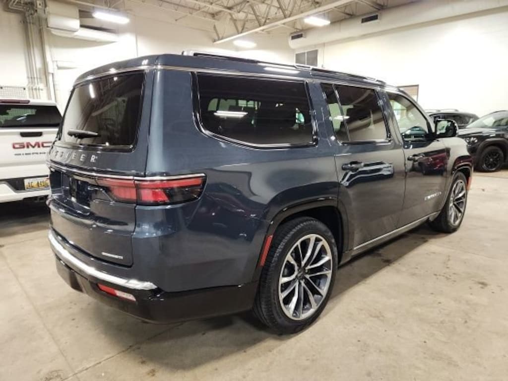 CARFAX One-Owner. Clean CARFAX. River Rock 2024 Jeep Wagoneer Series III 4WD 8-Speed Automatic 3.0L I6 **ONE OWNER**, ** LOW MILES**, **ACCIDENT FREE**, 4WD, 19 Speaker McIntosh Audio System, 2nd Row Manual Window Shades, 3 Panel Sunroof, 3.92 Rear Axle Ratio, 40/20/40 2nd Row Bench Power Tip/Slide, 8-Passenger Seating, Adjustable Roof Rail Crossbars, All-Season Floor Mats, Amazon Fire TV Built-In, Cargo Cover, Cargo Tray, Chrome Tow Hooks, Convenience Group I, Drowsy Driver Detection, Electronic Rear Limited Slip Differential, Flexible Seating Group, Full Length Floor Console, HD Trailer Tow Package, Heavy-Duty Engine Cooling, Intersection Collision Assist System, Locking In-Vehicle Safe, Luxury Front & Rear Floor Mats, MOPAR Interior Protection Package, Navigation System, P&P Park & Unpark Assist w/Stop System, Power Deployable Running Boards, Premium Group I, Quick Order Package 25N, Rear Seat Video Group 1, Removable Rear Tow Hook, Reversible Carpet/Vinyl Cargo Mat, Seatback Video Screens, Selec-Speed Control, Side Distance Warning, Surround View Camera System, Traffic Sign Recognition, Trailer Brake Control, Trailer Hitch Zoom, Video USB Port, Wheels: 22" x 9.0" Premium 3 Aluminum, 10 Speakers, 3.55 Rear Axle Ratio, 3rd row seats: bench, 4-Wheel Disc Brakes, ABS brakes, Adjustable pedals, Air Conditioning, Alloy wheels, AM/FM radio: SiriusXM with 360L, Anti-whiplash front head restraints, Apple CarPlay/Android Auto, Audio memory, Auto High-beam Headlights, Auto-dimming door mirrors, Auto-dimming Rear-View mirror, Auto-leveling suspension, Automatic temperature control, Brake assist, Bumpers: body-color, Compass, Delay-off headlights, Driver door bin, Driver vanity mirror, Driver's Seat Mounted Armrest, Dual front impact airbags, Dual front side impact airbags, Electronic Stability Control, Emergency communication system: Wagoneer Connect, Exterior Parking Camera Rear, Four wheel independent suspension, Front anti-roll bar, Front Bucket Seats, Front Center Armrest w/Storage, Front dual zone A/C, Front fog lights, Front reading lights, Fully automatic headlights, Garage door transmitter, Genuine wood console insert, Genuine wood dashboard insert, Genuine wood door panel insert, Heated door mirrors, Heated front seats, Heated rear seats, Heated steering wheel, Illuminated entry, Knee airbag, Leather Trimmed Bucket Seats, Low tire pressure warning, Memory seat, Normal Duty Suspension, Occupant sensing airbag, Outside temperature display, Overhead airbag, Overhead console, Panic alarm, Passenger door bin, Passenger seat mounted armrest, Passenger vanity mirror, Pedal memory, Power adjustable front head restraints, Power door mirrors, Power driver seat, Power Liftgate, Power passenger seat, Power steering, Power windows, Radio data system, Radio: Uconnect 5 Nav w/10.1" Display, Rain sensing wipers, Rear air conditioning, Rear anti-roll bar, Rear dual zone A/C, Rear reading lights, Rear seat center armrest, Rear window defroster, Rear window wiper, Reclining 3rd row seat, Remote keyless entry, Security system, Speed control, Speed-sensing steering, Speed-Sensitive Wipers, Split folding rear seat, Steering wheel memory, Steering wheel mounted audio controls, Tachometer, Telescoping steering wheel, Tilt steering wheel, Traction control, Trip computer, Turn signal indicator mirrors, Variably intermittent wipers, Ventilated front seats, Voltmeter, 4WD, 19 Speaker McIntosh Audio System, 2nd Row Manual Window Shades, 3 Panel Sunroof, 3.92 Rear Axle Ratio, 40/20/40 2nd Row Bench Power Tip/Slide, 8-Passenger Seating, Adjustable Roof Rail Crossbars, All-Season Floor Mats, Amazon Fire TV Built-In, Cargo Cover, Cargo Tray, Chrome Tow Hooks, Convenience Group I, Drowsy Driver Detection, Electronic Rear Limited Slip Differential, Flexible Seating Group, Full Length Floor Console, HD Trailer Tow Package, Heavy-Duty Engine Cooling, Intersection Collision Assist System, Locking In-Vehicle Safe, Luxury Front & Rear Floor Mats, MOPAR Interior Pro