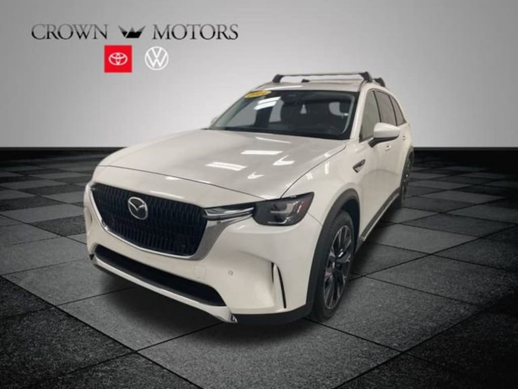 CARFAX One-Owner. Rhodium White Premium 2024 Mazda CX-90 PHEV Premium AWD 8-Speed Automatic 2.5L I4 DOHC 16V LEV3-SULEV30 12 Speakers, 3rd row seats: bench, 4-Wheel Disc Brakes, 4.444 Axle Ratio, ABS brakes, Air Conditioning, Alloy wheels, AM/FM radio: SiriusXM, Auto High-beam Headlights, Auto-dimming Rear-View mirror, Automatic temperature control, Brake assist, Bumpers: body-color, Cargo Net, Compass, Crossbars in Silver, Delay-off headlights, Driver door bin, Driver vanity mirror, Dual front impact airbags, Dual front side impact airbags, E911 Automatic Emergency Notification, Electronic Stability Control, Emergency communication system: MAZDA CONNECT, Exterior Parking Camera Rear, Four wheel independent suspension, Front anti-roll bar, Front Bucket Seats, Front Center Armrest w/Storage, Front dual zone A/C, Front reading lights, Fully automatic headlights, Garage door transmitter: HomeLink, Heads-Up Display, Heated door mirrors, Heated Front Bucket Seats, Heated front seats, Illuminated entry, Infotainment System Voice Command, Knee airbag, Leather Seat Trim, Leather Shift Knob, Leather steering wheel, Low tire pressure warning, Mazda Connected Services, Mazda Navigation System, Memory seat, Navigation system: MAZDA CONNECT, Occupant sensing airbag, Outside temperature display, Overhead airbag, Overhead console, Pandora Internet Radio Integration, Panic alarm, Passenger door bin, Passenger vanity mirror, Power door mirrors, Power driver seat, Power Liftgate, Power moonroof, Power passenger seat, Power steering, Power windows, Radio Broadcast Data System Program Information, Radio data system, Radio: AM/FM w/HD/Bose 12-Speaker Audio System, Rain sensing wipers, Rear air conditioning, Rear anti-roll bar, Rear reading lights, Rear window defroster, Rear window wiper, Remote keyless entry, Rhodium White Premium Paint Charge, SMS Text Msg Audio Delivery & Reply, Speed control, Speed-sensing steering, Split folding rear seat, Spoiler, Steering wheel mounted audio controls, Tachometer, Telescoping steering wheel, Tilt steering wheel, Traction control, Trip computer, Turn signal indicator mirrors, Variably intermittent wipers, Wheels: 21" x 9.5J Aluminum Alloy.
