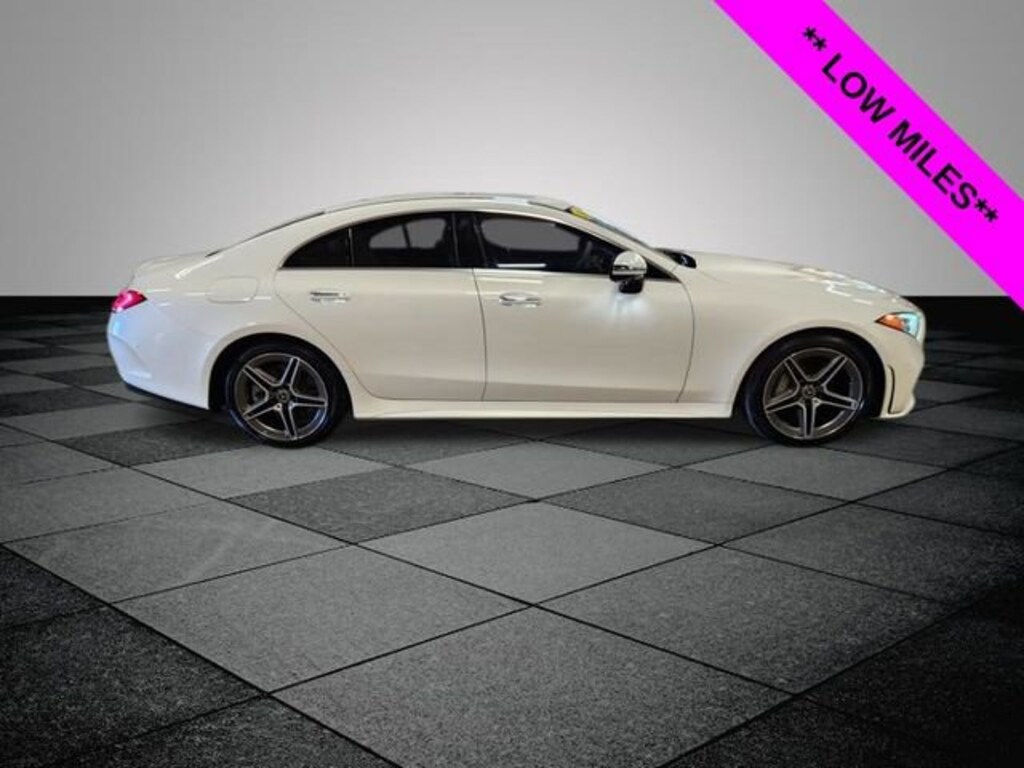 Diamond White 2019 Mercedes-Benz CLS CLS 450 4MATIC® 4MATIC® 9-Speed Automatic I6 ** LOW MILES**, **LOCAL TRADE IN**, 4MATIC®, 13 Speakers, 4-Wheel Disc Brakes, ABS brakes, Air Conditioning, Alloy wheels, AM/FM radio: SiriusXM, Apple CarPlay®/Android Auto®, Auto tilt-away steering wheel, Auto-dimming door mirrors, Auto-dimming Rear-View mirror, Automatic temperature control, Brake assist, Bumpers: body-color, Child-Seat-Sensing Airbag, Compass, Delay-off headlights, Driver door bin, Driver vanity mirror, Dual front impact airbags, Dual front side impact airbags, Electronic Stability Control, Emergency communication system: eCall Emergency System, Exterior Parking Camera Rear, Four wheel independent suspension, Front anti-roll bar, Front Bucket Seats, Front Center Armrest, Front dual zone A/C, Front reading lights, Fully automatic headlights, Garage door transmitter: Homelink, Genuine wood dashboard insert, Genuine wood door panel insert, Headlight cleaning, Heated door mirrors, Heated front seats, Heated Power Front Bucket Seats, Illuminated entry, Knee airbag, Leather Upholstery, Low tire pressure warning, Memory seat, Navigation system: COMAND®, Occupant sensing airbag, Outside temperature display, Overhead airbag, Overhead console, Panic alarm, Passenger door bin, Passenger vanity mirror, Power door mirrors, Power driver seat, Power moonroof, Power passenger seat, Power steering, Power windows, Premium audio system: COMAND®, Radio data system, Radio: COMAND® Navigation System, Rain sensing wipers, Rear anti-roll bar, Rear reading lights, Rear seat center armrest, Rear window defroster, Remote keyless entry, Security system, Speed control, Speed-sensing steering, Split folding rear seat, Steering wheel memory, Steering wheel mounted audio controls, Tachometer, Telescoping steering wheel, Tilt steering wheel, Traction control, Trip computer, Turn signal indicator mirrors, Variably intermittent wipers, Wheels: 19" Twin Multi-Spoke, 4MATIC®.