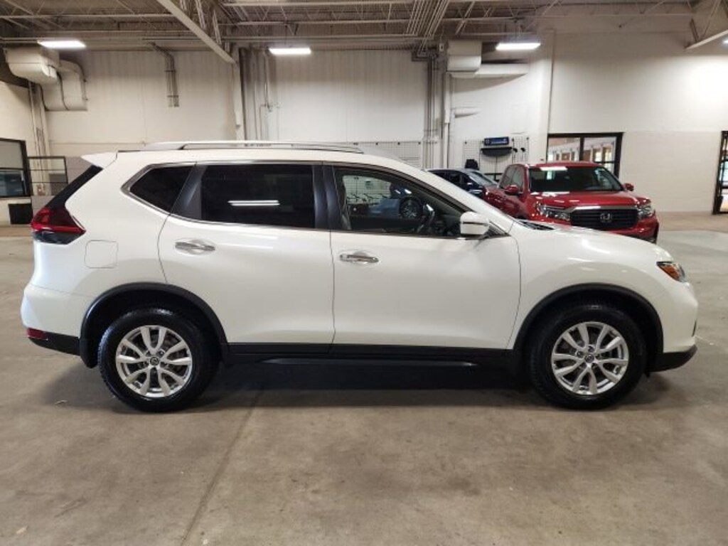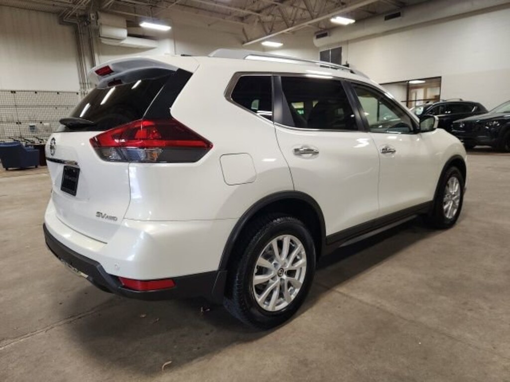 Pearl White Tricoat 2019 Nissan Rogue SV AWD CVT with Xtronic 2.5L I4 DOHC 16V ** LOW MILES**, **LOCAL TRADE IN**, AWD, 17" Aluminum Alloy Wheels, 4-Wheel Disc Brakes, 6 Speakers, 6.386 Axle Ratio, ABS brakes, Air Conditioning, Alloy wheels, AM/FM radio: SiriusXM, Anti-whiplash front head restraints, Auto High-beam Headlights, Automatic temperature control, Black Splash Guards (Set of 4), Blind Spot Warning, Brake assist, Bumpers: body-color, CD player, Cloth Seat Trim, Delay-off headlights, Driver door bin, Driver vanity mirror, Dual front impact airbags, Dual front side impact airbags, Electronic Stability Control, First Aid Kit, Floor Mats & 2-PC Cargo Area Protector, Four wheel independent suspension, Front anti-roll bar, Front Bucket Seats, Front Center Armrest w/Storage, Front dual zone A/C, Front reading lights, Fully automatic headlights, Heated door mirrors, Heated Front Bucket Seats, Heated front seats, Illuminated entry, Leather Shift Knob, Low tire pressure warning, NissanConnect featuring Apple CarPlay and Android Auto, Occupant sensing airbag, Outside temperature display, Overhead airbag, Overhead console, Panic alarm, Passenger door bin, Passenger vanity mirror, Power door mirrors, Power driver seat, Power Liftgate, Power steering, Power windows, Radio data system, Radio: AM/FM/CD/AUX, Radio: AM/FM/CD/AUX NissanConnect w/Navigation, Rear anti-roll bar, Rear Parking Sensors, Rear seat center armrest, Rear window defroster, Rear window wiper, Remote keyless entry, Roof rack: rails only, Security system, Speed control, Speed-sensing steering, Split folding rear seat, Spoiler, Steering wheel mounted audio controls, Tachometer, Telescoping steering wheel, Tilt steering wheel, Traction control, Trip computer, Turn signal indicator mirrors, Variably intermittent wipers, AWD.