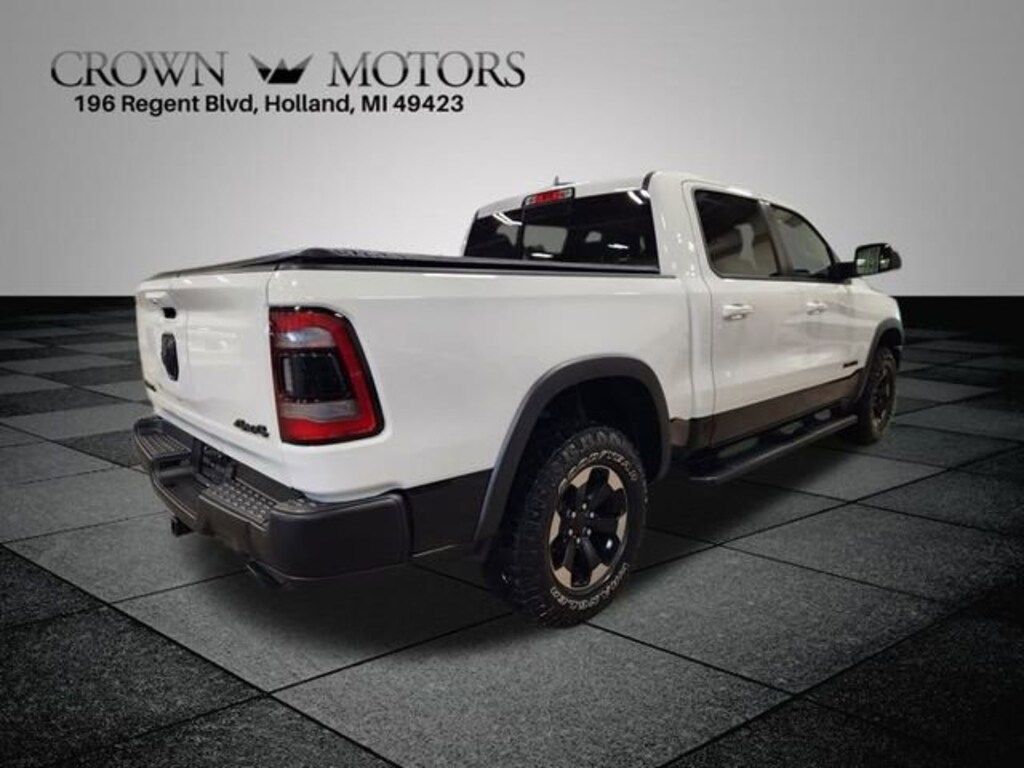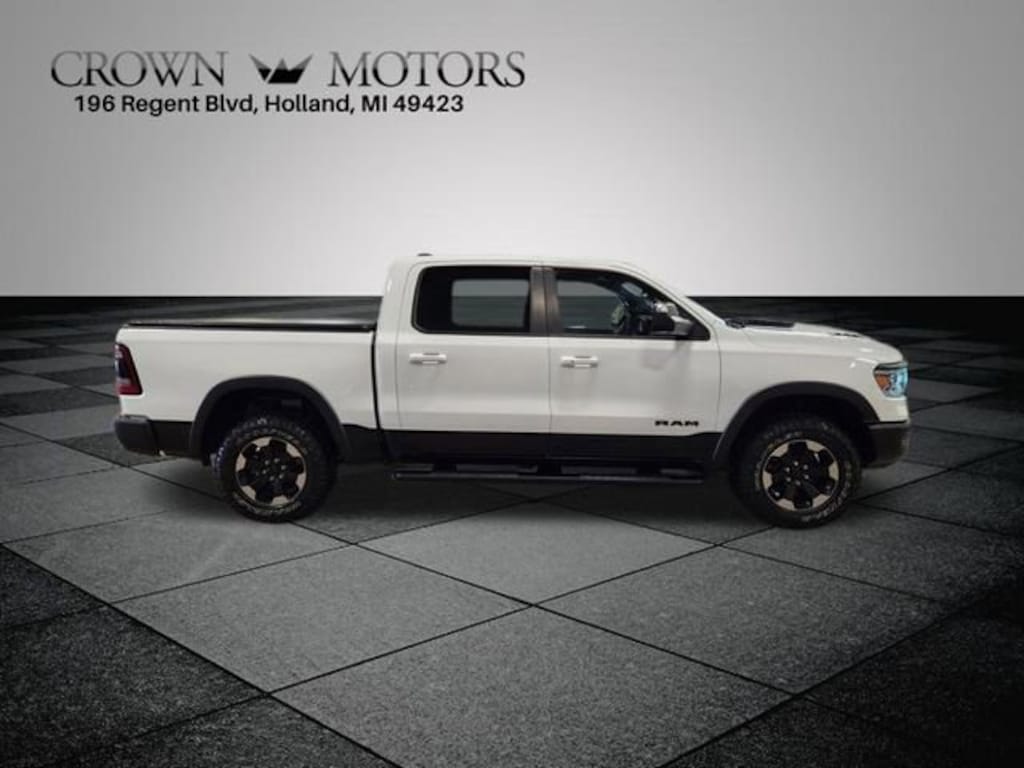 Clean CARFAX. Bright White Clearcoat 2020 Ram 1500 Rebel 4WD 8-Speed Automatic HEMI 5.7L V8 Multi Displacement VVT **SUNROOF / MOONROOF**, **LEATHER**, **ACCIDENT FREE**, **LOCAL TRADE IN**, 1-Yr SiriusXM Guardian Trial, 115V Auxiliary Rear Power Outlet, 12" Touchscreen Display, 2 USB Full Function/Charge Only Media Hub, 3.92 Rear Axle Ratio, 33 Gallon Fuel Tank, 4 Adjustable Cargo Tie-Down Hooks, 4 Way Front Headrests, 4-Wheel Disc Brakes, 48V Belt Starter Generator, 4G LTE Wi-Fi Hot Spot, 5-Year SiriusXM Traffic Service, 5-Year SiriusXM Travel Link Service, 6 Speakers, ABS brakes, Air Conditioning, Alloy wheels, AM/FM radio: SiriusXM, Apple CarPlay, Auto-Dimming Rear-View Mirror, Bed Utility Group, Black Premium Power Mirrors, Black Trailer Tow Power Mirrors, Body Color Door Handles, Brake assist, Bucket Seats, Cloth/Vinyl Low Back Bucket Seats, Compass, Delay-off headlights, Deployable Bed Step, Disassociated Touchscreen Display, Dome Dual LED Reading Lamp, Driver door bin, Dual front impact airbags, Dual front side impact airbags, Dual-Pane Panoramic Sunroof, Electronic Stability Control, Foam Bottle Insert (Door Trim Panel), For Details, Visit DriveUconnect.com, Front anti-roll bar, Front Bucket Seats, Front Center Armrest w/Storage, Front fog lights, Front reading lights, Front Seat Back Map Pockets, Front wheel independent suspension, Full Length Upgraded Floor Console, Fully automatic headlights, Google Android Auto, GPS Antenna Input, GPS Navigation, harman/kardon 19 Speaker Premium Sound, HD Radio, Heated door mirrors, Heated Front Seats, Heated Steering Wheel, Illuminated entry, Integrated Center Stack Radio, Leather steering wheel, LED Footwell Lighting, Low tire pressure warning, Lux Leather Trimmed Bucket Seats, Multi-Function Tailgate, Occupant sensing airbag, Outside temperature display, Overhead airbag, Overhead console, Overhead LED Lamps, Panic alarm, ParkSense Front/Rear Park Assist w/Stop, ParkView Rear Back-Up Camera, Passenger door bin, Passenger vanity mirror, Pick-Up Box Lighting, Power 4-Way Driver Lumbar Adjust, Power 4-Way Passenger Lumbar Adjust, Power 8-Way Driver & Passenger Seats, Power Adjustable Pedals, Power door mirrors, Power driver seat, Power steering, Power windows, Premium Overhead Console, Quick Order Package 25W Rebel, Radio data system, Radio: Uconnect 12 w/Navigation, Radio: Uconnect 3 w/5" Display, Radio: Uconnect 4 w/8.4" Display, Rain Sensitive Windshield Wipers, RAMs Head Badge, Rear 60/40 Folding Seat, Rear anti-roll bar, Rear Dome w/On/Off Switch Lamp, Rear seat center armrest, Rear step bumper, Rear Underseat Compartment Storage, Rear Wheelhouse Liners, Rear Window Defroster, Rebel 12, Rebel Level 2 Equipment Group, Remote keyless entry, Remote Proximity Keyless Entry, Remote Start System, Security Alarm, Single Disc Remote CD Player, SiriusXM Satellite Radio, SiriusXM Traffic Plus, SiriusXM Travel Link, SiriusXM w/360L, Speed control, Split folding rear seat, Spray In Bedliner, Steering wheel mounted audio controls, Sun Visors w/Illuminated Vanity Mirrors, Tachometer, Telescoping steering wheel, Tilt steering wheel, Traction control, Trailer Brake Control, Trailer Tow Group, Trip computer, Universal Garage Door Opener, USB Host Flip, Variably intermittent wipers, Voltmeter, Wheels: 18" x 8" Painted Black.