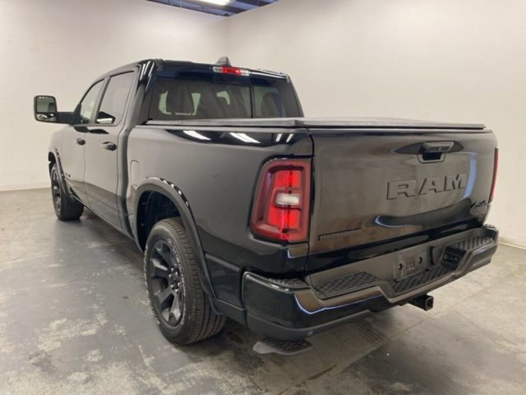 CARFAX One-Owner. Clean CARFAX. Diamond Black Crystal Pearlcoat 2025 Ram 1500 Big Horn/Lone Star 4WD 8-Speed Automatic 3.6L V6 24V VVT 115V Auxiliary Power Outlet, 115V Auxiliary Rear Power Outlet, 12" Touchscreen Display, 2nd Row In Floor Storage Bins, 400W Inverter, 4G LTE Wi-Fi Hot Spot, 9 Amplified Speakers w/Subwoofer, Accent Color Door Handles, Accent Color Premium Power Mirrors, Accent Color Tailgate Handle, Air Conditioning ATC w/Dual Zone Control, Anti-Spin Differential Rear Axle, Apple CarPlay, Auto Power-Folding Mirrors, Auto-Dimming Exterior Driver Mirror, Auto-Dimming Rear-View Mirror, Bed Utility Group, Big Horn Badge, Big Horn Level 2 Equipment Group, Black Exterior Mirrors, Black Exterior Truck Badging, Black Headlamp Bezels, Black Interior Accents, Black Painted Exterior Mirrors Caps, Black Premium Power Mirrors, Black Tail Lamp Bezels, Black Trailer Tow Power Mirrors, Body Color Front Bumper, Body Color Rear Bumper w/Step Pads, Cluster 7.0" TFT Color Display, Configurable Drive Mode, Connected Travel & Traffic Services, Connectivity - US/Canada, Convex Wide-Angle Exterior Mirror Insert, Deluxe Cloth Bucket Seats, Exterior 115V AC Outlet, Exterior Mirrors Courtesy Lamps, Exterior Mirrors w/Heating Element, Exterior Mirrors w/Supplemental Signals, Glove Box Lamp, Google Android Auto, GPS Antenna Input, GPS Navigation, Grille Black Surround Black Mesh, HD Radio, Heated Front Seats, Heated Steering Wheel, Integrated Voice Command w/Bluetooth, Leather Wrapped Steering Wheel, LED Dome Lamp w/On/Off Switch, LED Footwell Lighting, Manual Folding Exterior Mirrors, Manual Telescoping Mirrors, Media Hub w/2 Charge Only USBs, Mirror Clearance/Running Lights, MOPAR 4 Adjustable Cargo Tie-Down Hooks, MOPAR Spray In Bedliner, Night Edition, Overhead LED Lamps, Pick-Up Box Lighting, Power 2-Way Driver Lumbar Adjust, Power Adjust 8-Way Driver Seat, Power Adjustable Pedals, Power-Adjustable Convex Aux Mirrors, Premium Overhead Console, Quick Order Package 23Z Big Horn, Radio: Uconnect 5 Nav w/12.0" Display, RAM Grille Badge - Black, Rear Power Sliding Window, Rear Window Defroster, Remote Tailgate Release, Security Alarm, SiriusXM w/360L, Steering Wheel Mounted Audio Controls, Sun Visors w/Illuminated Vanity Mirrors, Trailer Brake Control, Trailer Reverse Steering Control, Trailer Tire Pressure Monitoring System, Trailer Tow Group, Trailer Tow Mirrors, Universal Garage Door Opener, USB Host Flip, Wheels: 20" x 9.0" Aluminum Painted Clad, 3 Rear Seat Head Restraints, 3.21 Rear Axle Ratio, 33 Gallon Fuel Tank, 4 Way Front Headrests, 4-Wheel Disc Brakes, 6 Speakers, ABS brakes, Air Conditioning, Alloy wheels, AM/FM radio, Apple CarPlay/Android Auto, Auto High-beam Headlights, Brake assist, Bucket Seats, Bumpers: chrome, Cloth Bench Seat, Compass, Delay-off headlights, Driver door bin, Dual front impact airbags, Dual front side impact airbags, Electronic Stability Control, Front anti-roll bar, Front Center Armrest w/Storage, Front fog lights, Front reading lights, Front Seat Back Map Pockets, Front wheel independent suspension, Full Length Floor Console, Fully automatic headlights, Heated door mirrors, Illuminated entry, Low tire pressure warning, Manual Adjust 4-Way Front Passenger Seat, Manufacturer's Statement of Origin, MOPAR Front & Rear Rubber Floor Mats, Occupant sensing airbag, Outside temperature display, Overhead airbag, Overhead console, Panic alarm, ParkView Rear Back-Up Camera, Passenger door bin, Passenger vanity mirror, Power door mirrors, Power steering, Power windows, Radio data system, Radio: Uconnect 5 W w/8.4" Display, RAM Grille Badge - Chrome, Rear 60/40 Folding Seat, Rear anti-roll bar, Rear Center Armrest, Rear seat center armrest, Rear step bumper, Remote keyless entry, Speed control, Split folding rear seat, Supplier Part Tracking (J-1), Tachometer, Telescoping steering wheel, Tilt steering wheel, Traction control, Tri-Fold Tonneau Cover, Trip computer, Variably intermittent wipers, Voltmeter, Wheels: 18"