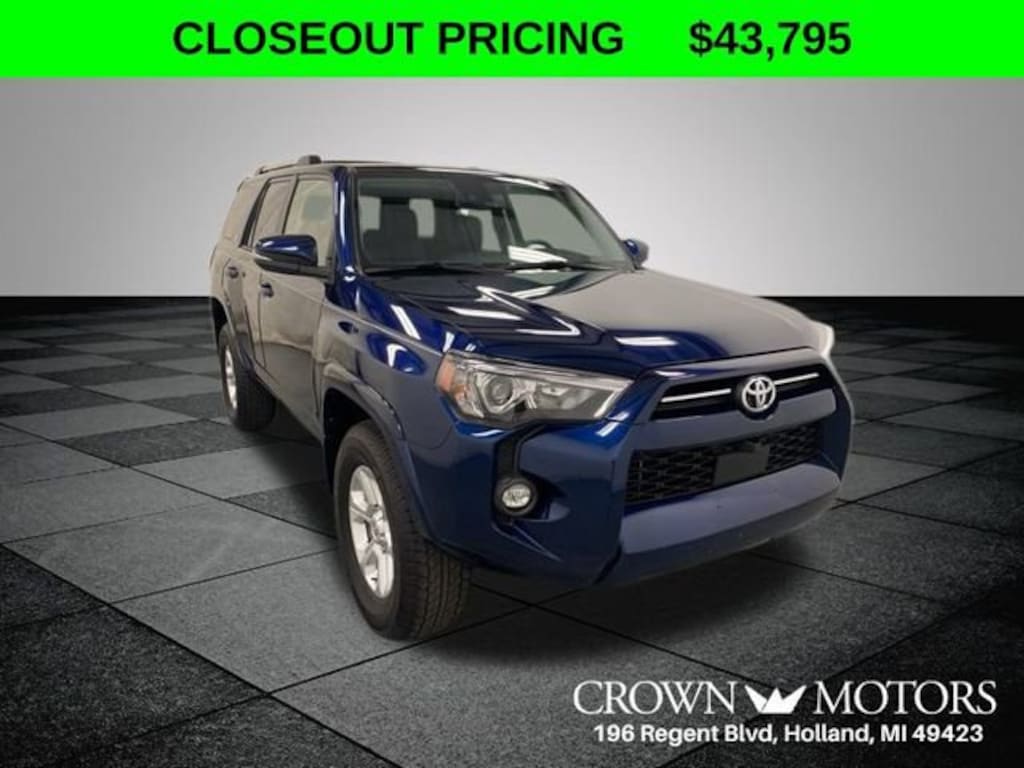 CARFAX One-Owner. Clean CARFAX. Nautical Blue Metallic 2024 Toyota 4Runner SR5 Premium 4WD 5-Speed with ECT 4.0L V6 DOHC 24V **ONE OWNER**, **ACCIDENT FREE**, 4Runner SR5 Premium, 4WD, Graphite Artificial Leather, 17" 6-Spoke Alloy Wheels, 3.727 Axle Ratio, 4-Wheel Disc Brakes, 8 Speakers, ABS brakes, Air Conditioning, All Weather Floor Liner & Cargo Tray (TMS), Alloy wheels, AM/FM radio: SiriusXM, Anti-whiplash front head restraints, Apple CarPlay/Android Auto, Auto High-beam Headlights, Auto-dimming Rear-View mirror, Brake assist, Bumpers: body-color, Compass, Driver door bin, Driver vanity mirror, Dual front impact airbags, Dual front side impact airbags, Electronic Stability Control, Emergency communication system: Safety Connect (1-year trial), Exterior Parking Camera Rear, Front anti-roll bar, Front Bucket Seats, Front Center Armrest, Front fog lights, Front reading lights, Front wheel independent suspension, Garage Door Opener, Garage door transmitter: HomeLink, Heated door mirrors, Heated Front Bucket Seats, Heated front seats, Heated Outside Rear-View Mirrors, Heated steering wheel, Illuminated entry, Knee airbag, Leather Shift Knob, Leather steering wheel, Low tire pressure warning, Moonroof Package, Moonroof w/Tilt Up & Slide, Navigation System, Occupant sensing airbag, Outside temperature display, Overhead airbag, Overhead console, Panic alarm, Panoramic Back Monitor, Passenger door bin, Passenger vanity mirror, Power door mirrors, Power driver seat, Power passenger seat, Power steering, Power windows, Radio: Premium Audio, Rear anti-roll bar, Rear seat center armrest, Rear window defroster, Rear window wiper, Remote keyless entry, Roof Rack Cross Bars (TMS), Security system, SofTex Seat Trim, Speed control, Speed-sensing steering, Split folding rear seat, Spoiler, SR5 Premium Plus Package, Steering wheel mounted audio controls, Tachometer, Telescoping steering wheel, Tilt steering wheel, Traction control, Trip computer, Turn signal indicator mirrors, Variably intermittent wipers, 4Runner SR5 Premium, 4WD, Graphite Artificial Leather.