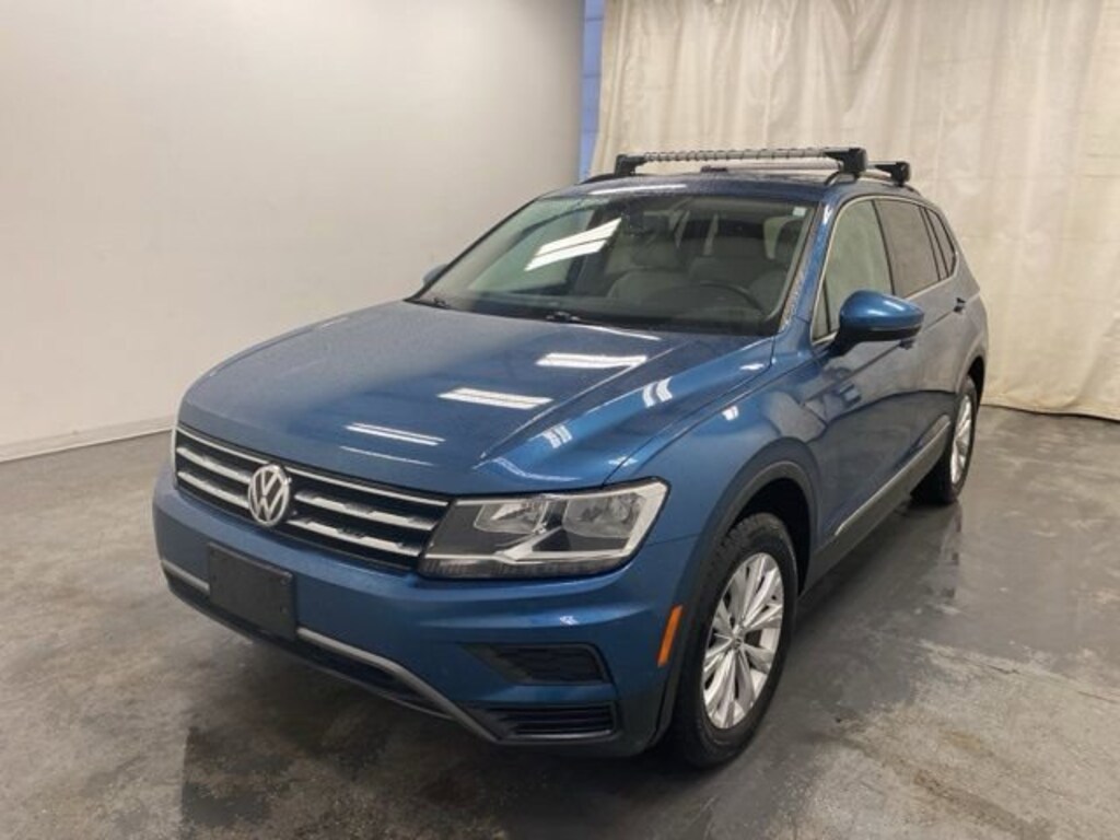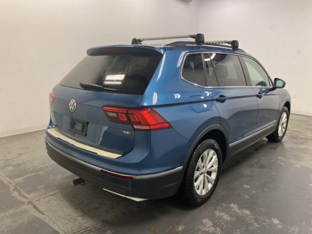 Clean CARFAX. Blue Metallic 2018 Volkswagen Tiguan 2.0T SE FWD 8-Speed Automatic with Tiptronic 2.0L TSI DOHC 3-Row Rubber Mats Kit, 3.33 Axle Ratio, 3rd row seats: bench, 4-Wheel Disc Brakes, 6 Speakers, ABS brakes, Air Conditioning, Alloy wheels, AM/FM radio: SiriusXM, Automatic temperature control, Brake assist, Bumpers: body-color, Compass, Delay-off headlights, Driver door bin, Driver vanity mirror, Dual front impact airbags, Dual front side impact airbags, Electronic Stability Control, Emergency communication system: VW Car-Net, Exterior Parking Camera Rear, First Aid Kit, Four wheel independent suspension, Front anti-roll bar, Front Bucket Seats, Front Center Armrest, Front dual zone A/C, Front reading lights, Fully automatic headlights, Heated door mirrors, Heated Front Bucket Seats, Heated front seats, Illuminated entry, Leather Shift Knob, Low tire pressure warning, Occupant sensing airbag, Outside temperature display, Overhead airbag, Overhead console, Panic alarm, Passenger door bin, Passenger vanity mirror, Perforated V-Tex Leatherette Seating Surfaces, Power door mirrors, Power driver seat, Power steering, Power windows, Radio data system, Radio: AM/FM/HD/CD w/Dual USB & Aux-In, Rear anti-roll bar, Rear reading lights, Rear seat center armrest, Rear window defroster, Rear window wiper, Remote CD player, Remote keyless entry, Roadside Assistance Kit, Roof rack: rails only, Speed control, Speed-sensing steering, Split folding rear seat, Spoiler, Steering wheel mounted audio controls, Tachometer, Telescoping steering wheel, Tilt steering wheel, Traction control, Trip computer, Turn signal indicator mirrors, Variably intermittent wipers, Wheels: 17" Tulsa.